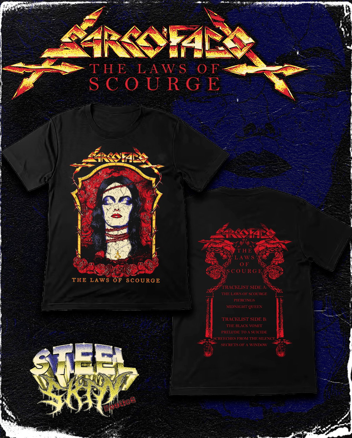 Steel Skin Bootleg – Camiseta de manga corta Sarcofago - The Laws of Scourge.